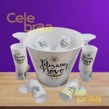 Balde de Gelo 5 Litros + 10 Taças Champanhe Personalizados em transfer - Ideal para Festas, Eventos, Baladas, Bares e Restaurantes